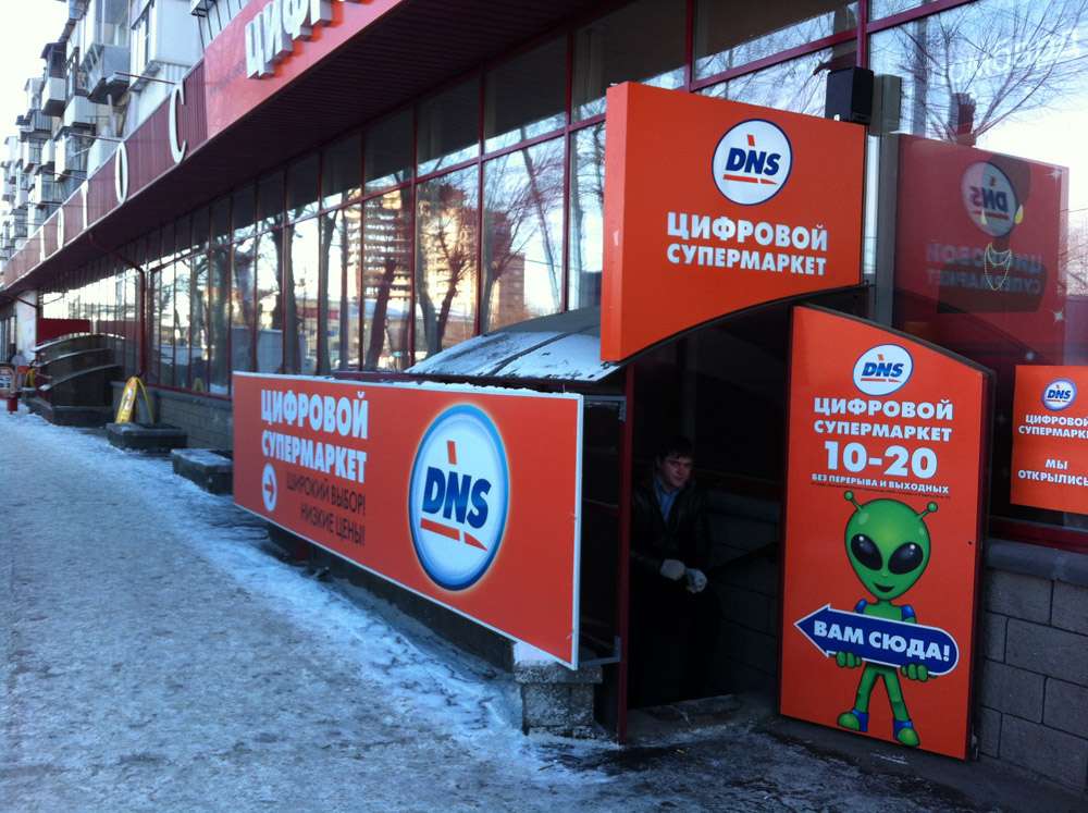 Супермаркет DNS, ул.Худякова 7 Портфолио Categories: Световые короба из композитного материала, Световые объемные буквы и знаки и Сеть цифровых супермаркетов DNS.